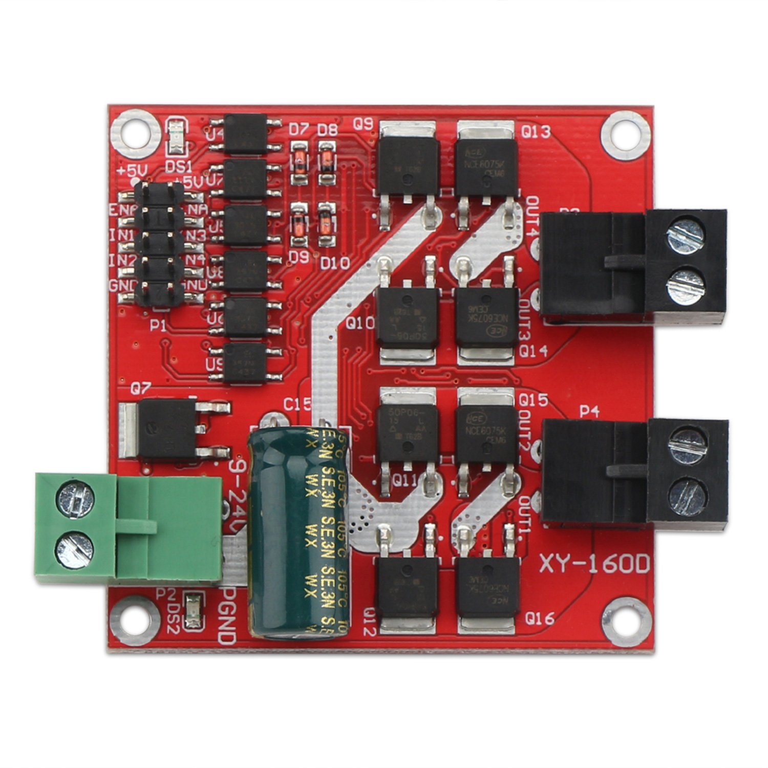 - DROK DC motor driver input voltage range is DC 6.5V-27V, can be input DC 12V or 24V, rated output current of each port is 7A, total output power is 160W.