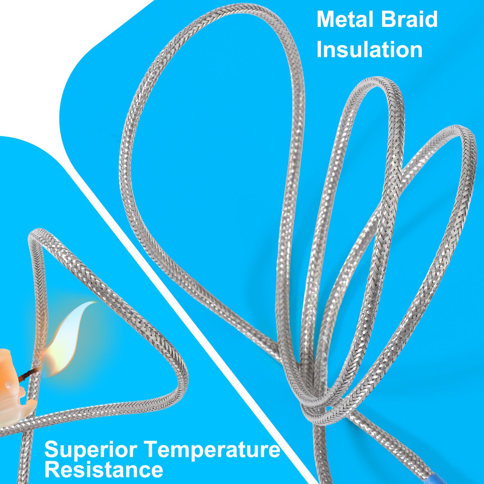 - Premium Material: Crafted with fiberglass and wrapped by metal braid, DROK thermocouple k type offers excellent insulation, superior heat resistance, and high tensile strength for reliable performance in tough environments. The interface features pure silver spade terminals, delivering superior data transmission performance.