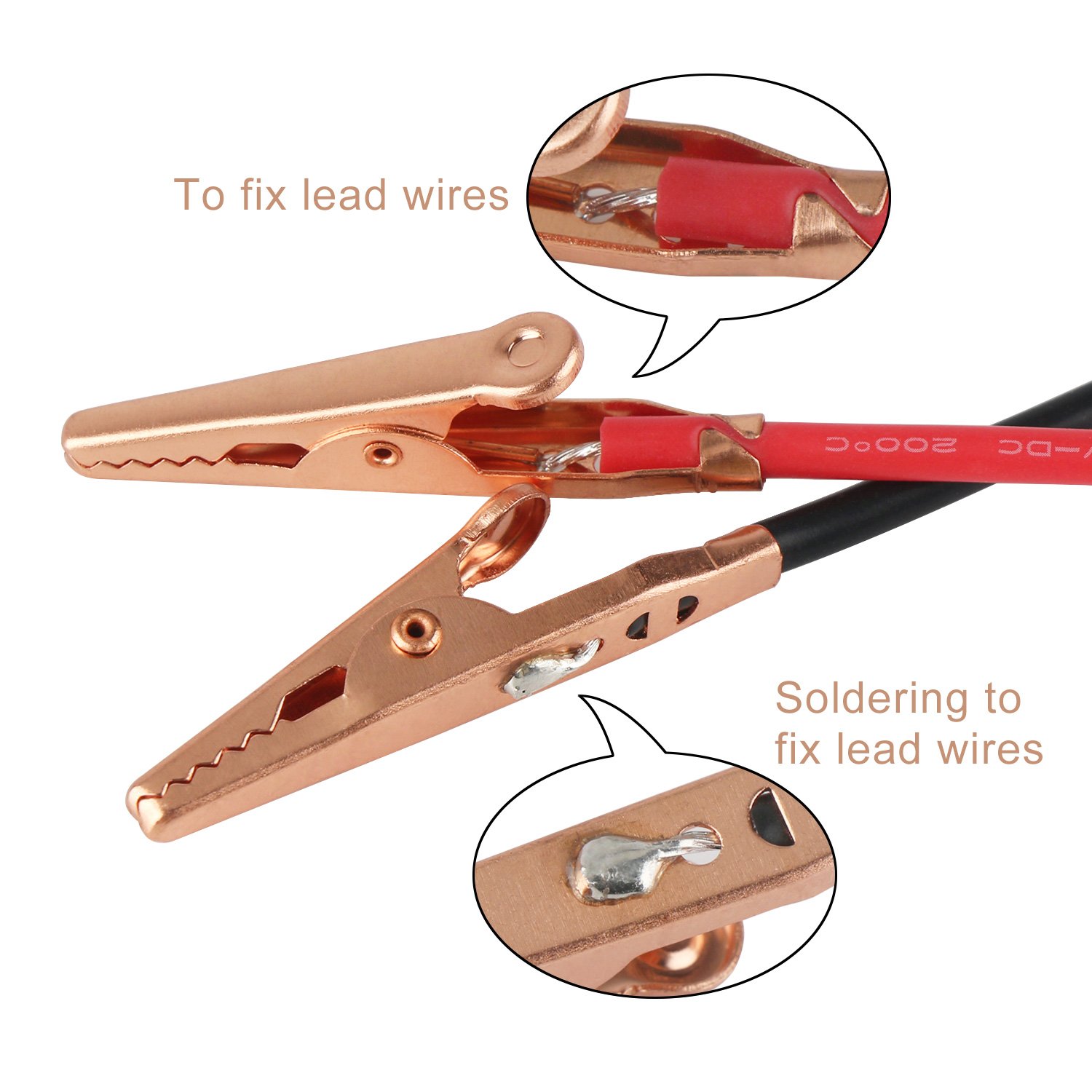 - GOOD QUALITY CLIPS --- with aligned sharp teeth, solid springs and rivet, the copper alligator clips are featured with good clamping pressure and good bite on jaws.
